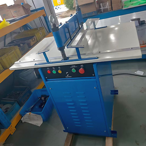 ST-MSCM Motorized Type Fabric Pinking Machine is used to cut fabric samples with attractive zig-zag edges.