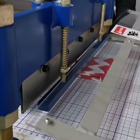 Cutting table is scaled on one side to allow the operator to decide the size of cut conveniently and accurately.